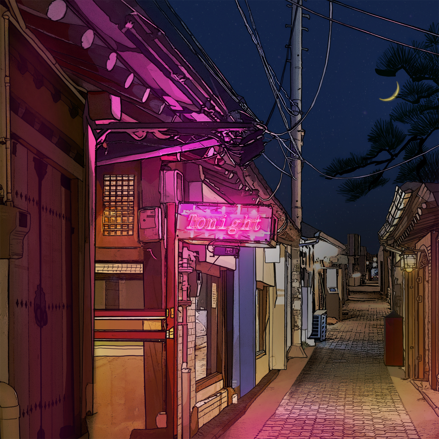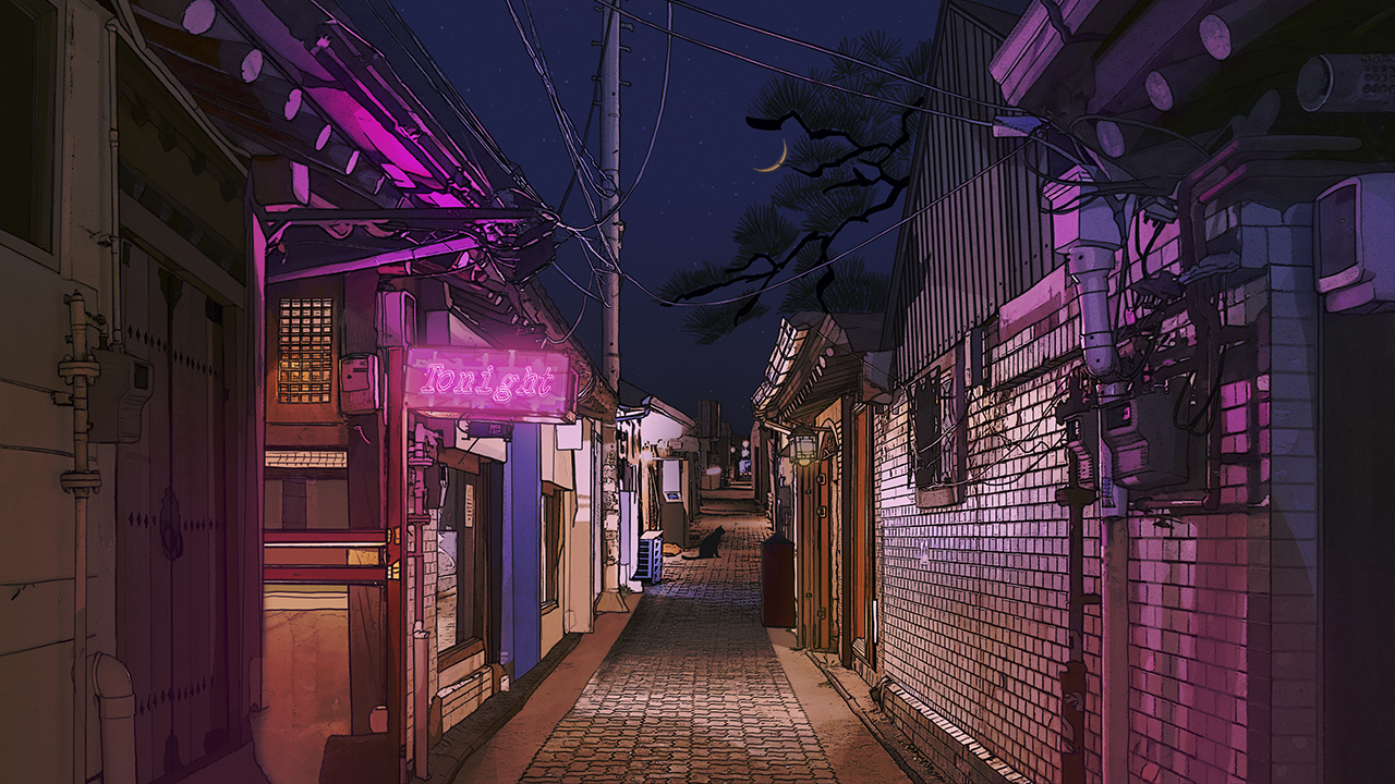 Old quiet alleys exist in reality in the city of Seoul, but at the same time, they also do not. Those old alleyways possess a look from yesterday, although in fact, they are not very different from the bright cities of today. The moonlight that illuminates the dark evening loses its power to the splendor of the city under the sky. However, in “Tonight,” this dazzling evening is somehow colored by emptiness.